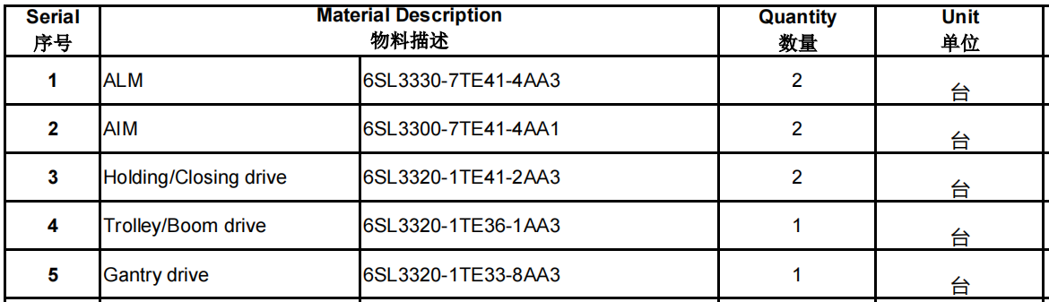 本次因只涉及变频器的升级,更换新的变频器,需将电气房内的旧变频器及其附件拆除,包括 2个AIM,两个ALM,开闭/支持/小车/大车4个变频器。拆除运输过程中必须保护好每个变频器,并运送到罗源国际公司指定的地方存放。