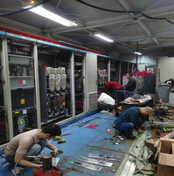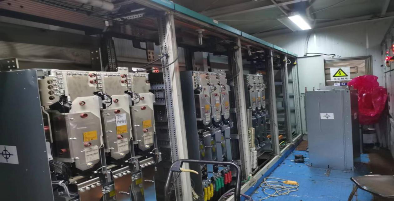 安装固定驱动,利用原有柜体进行固定,因新的设备与原设备尺寸有差别,需对控制回路以及进线铜排进行重新设计制作。
